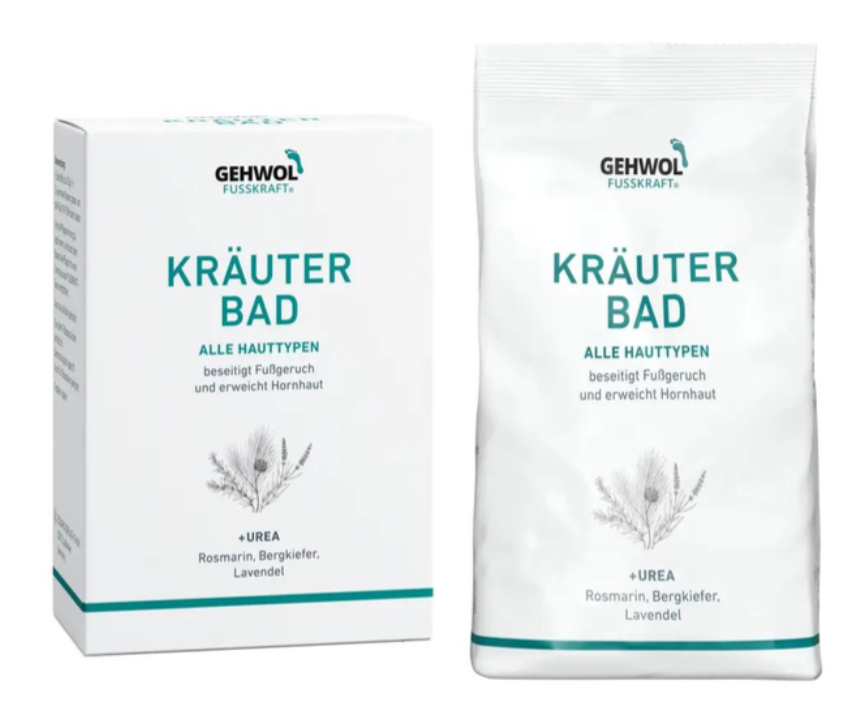 Gehwol Трав'яна ваннаЗасіб з натуральними інгредієнтами з трав та ефірних олій, у тому числі й олії гірської сосни. Її основна дія спрямована на нормалізацію процесу потовиділення та тривалу дію проти запаху поту.