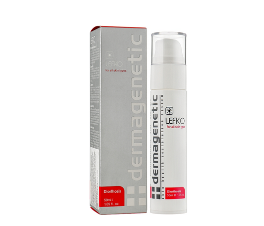 Крем-гель Dermagenetic Lefko для обличчя з ефектом відбілювання. Унікальна формула препарату створена для освітлення вже наявних пігментних плям, а також для профілактики гіперпігментації. Сучасний активний інгредієнт Диметилметокси-хроманілу-пальмітат є безпечним відбілюючим агентом, він пригнічує утворення меланіну шляхом інгібування тирозинази, його ефективність помітно вища за арбутин, койєву кислоту і магній аскорбіл фосфат. Вирішує проблему не тільки гіперпігментації, а й додатково зволожує, відлущує та виявляє антиоксидантну активність. Також у формулі препарату включені 2 сучасні УФ-фільтри, які дозволяють захищати шкіру від сонця та запобігати його негативному впливу. Ціна: 2 396.00 грн.