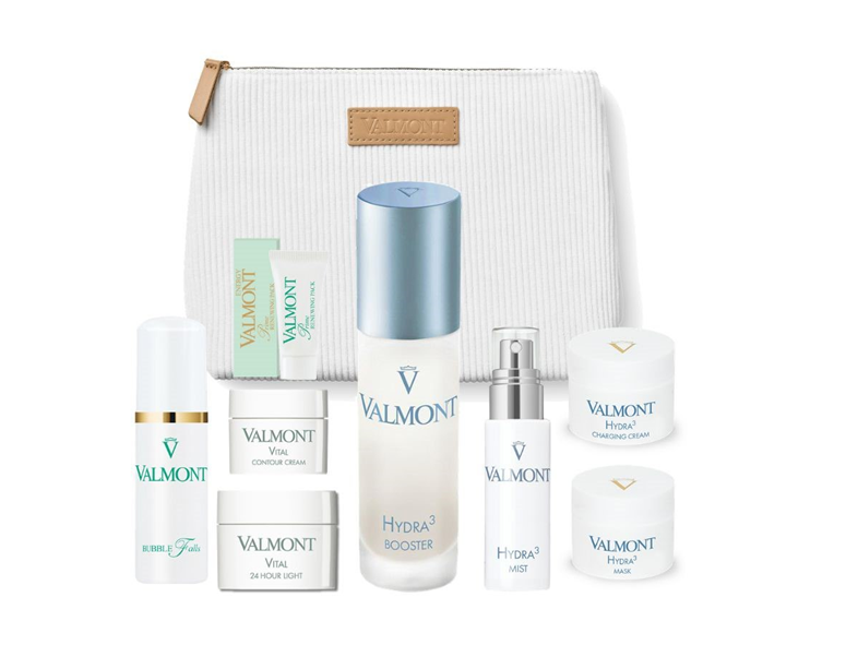 В состав набора входит: 1. Valmont Косметичка CORDUROY М. 2. Valmont HYDRA3 Бустер для лица, 30 мл. 3. Valmont HYDRA3 Ультратонкий увлажняющий мист, 30 мл. 4. Valmont HYDRA3 Charging Cream Энергетический увлажняющий крем для лица, 10 мл. 5. Valmont HYDRA3 Mask Интенсивно увлажняющая маска для лица, 10 мл. 6. Valmont Prime Renewing Pack Антистрессовая клеточная крем-маска, 5 мл. 7. Valmont Vital 24 HOUR LIGHT Ревитализирующий крем для кожи лица VITAL 24 часа, 10 мл. 8. Vital CONTOUR CREAM Ревитализирующий крем для кожи вокруг глаз, 3 мл. 9. Valmont Bubble Falls Очищающая пенка для лица, 50 мл. Ціна: 8 400.00 грн.